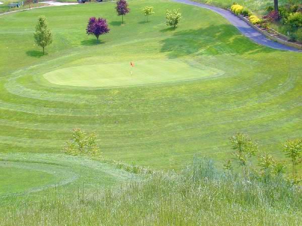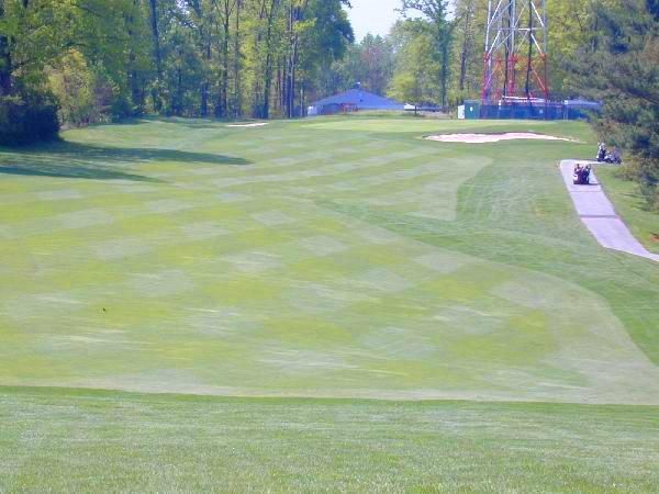 Reachable in 2, especially since the last 100 yards is downhill. Don't miss this green to the right or you'll be OB.