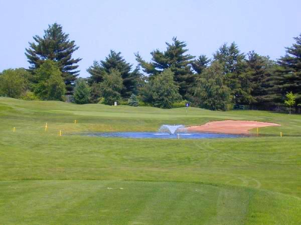 Favor the right side of the fairway for the best approach. This green slopes from back to front and from left to right. Stay below the hole for an easier putt.